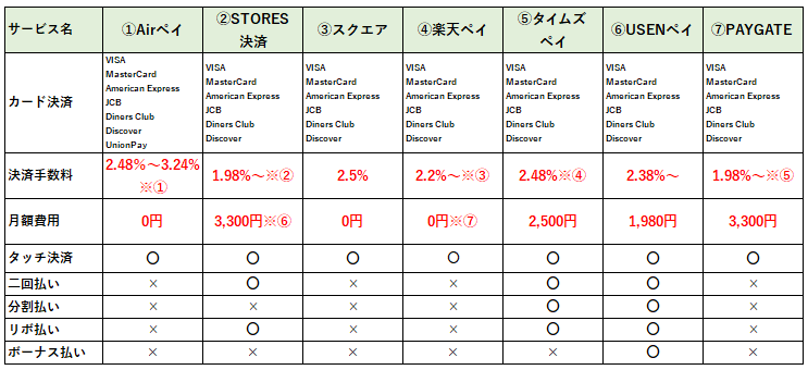 ◆スマホ決済会社でクレジットカード決済対応の7社