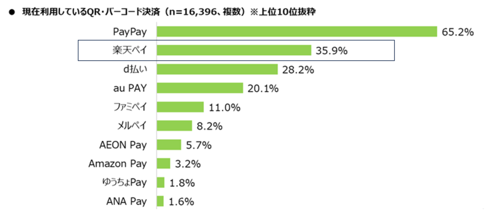 QRコード決済の中で利用率が2位の「楽天ペイ」!1位は「PayPay」
